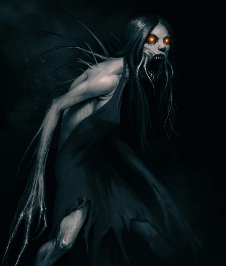 در باوری دیگر ارواح خبیس با لباسهایی بلند که آستین آن روی زمین کشیده میشود با سرعت باد حرکت کرده همچون شبحی با چهره ایی سیاه و چشمانی سرخ در تاریکی و سکوت شب به مردم حمله کرده آستین بلند خود را همچون طناب دار به دور گردن طعه می اندازد و بر روی زمین کشان کشان به تاریکی برده و مرگی دردناک در انتظار اوست